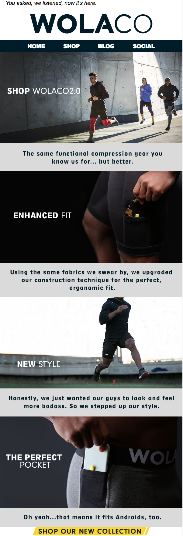 As Creative Director for WOLACO, I conceptualized, designed, and wrote our emails.
