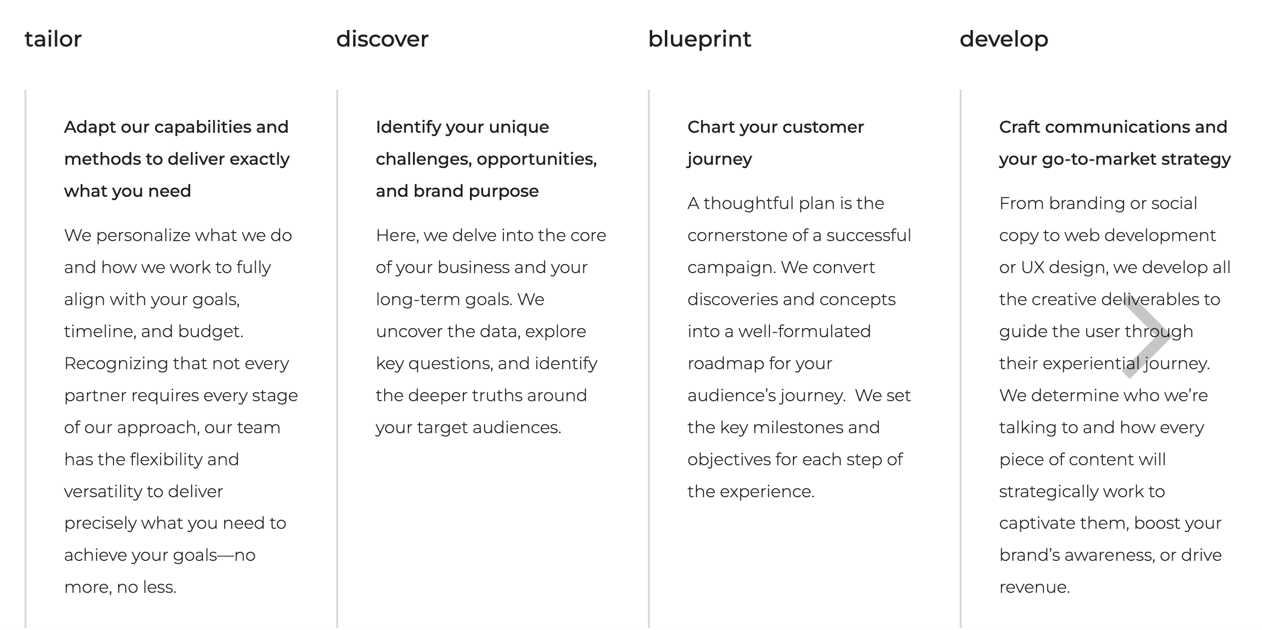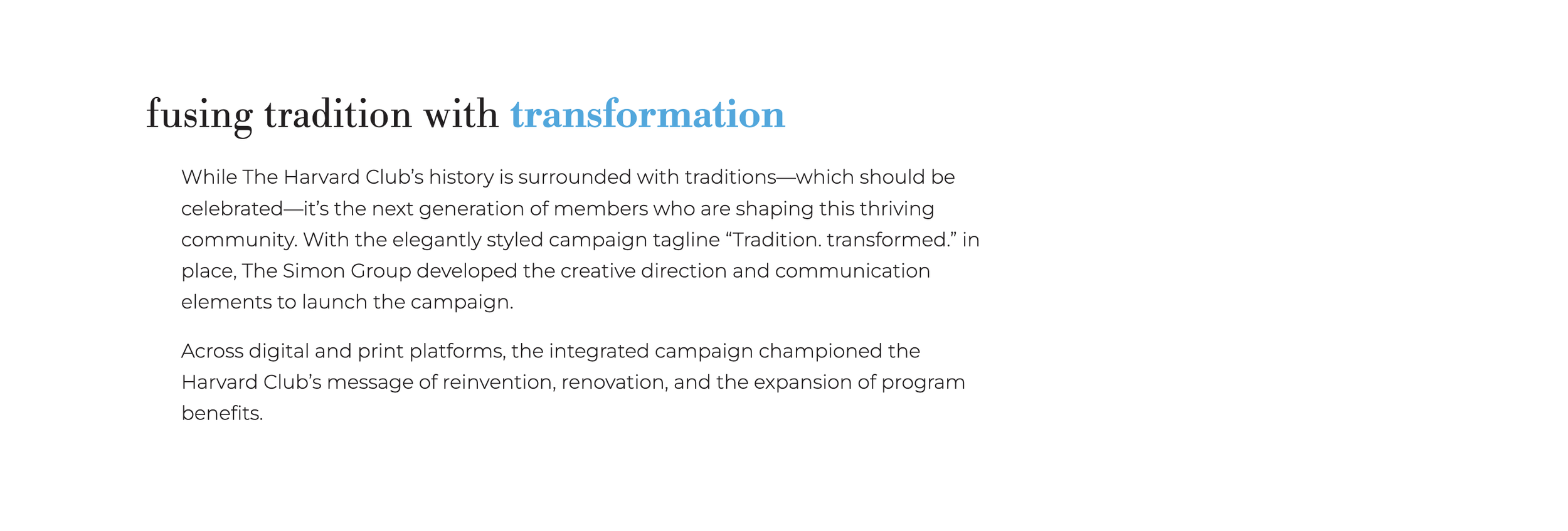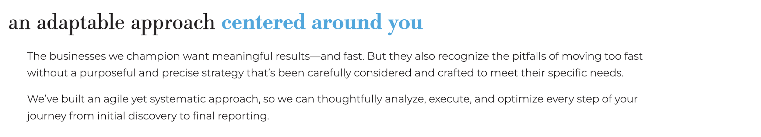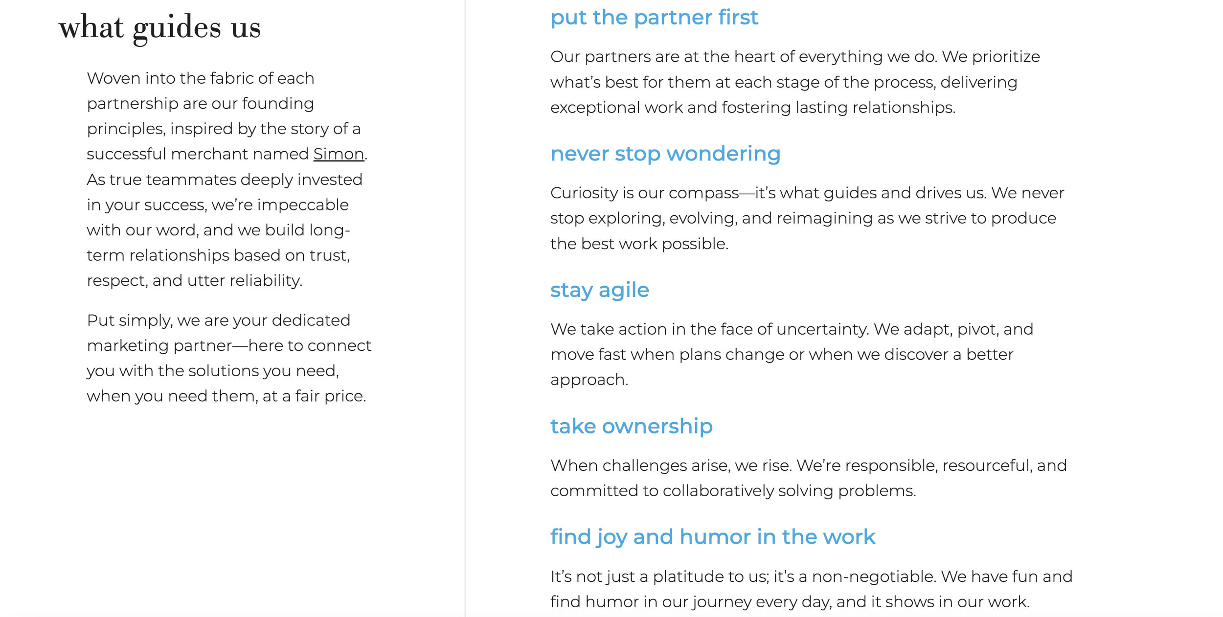 I also helped the agency refine and elevate their positioning and branding to attract new clients. With the theme of unlocking wonder, I led the content strategy, wrote the copy, and optimized SEO for The Simon Group’s new website. You can see some of the work below.