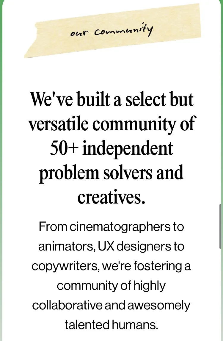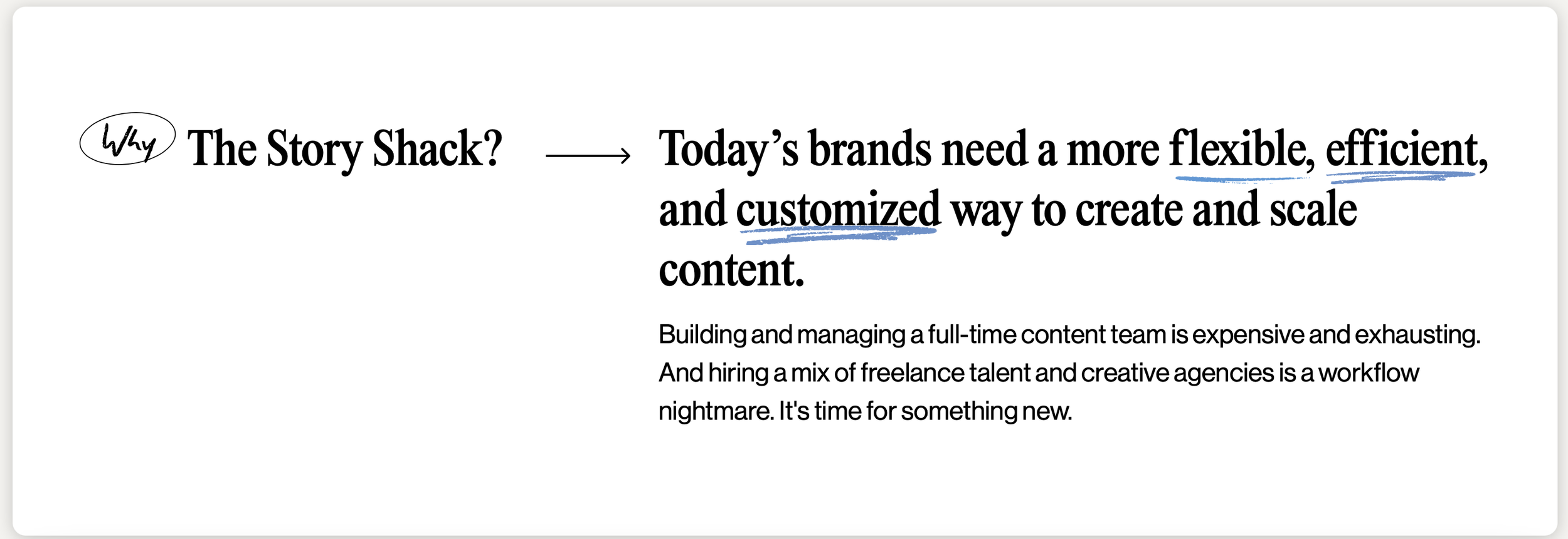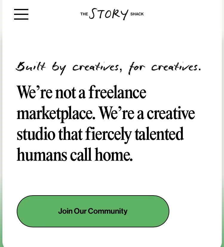The founders of The Story Shack—a content studio and online community for fractional freelance creatives—were in the early stages of building their brand and business when they brought me on board. As content lead and copywriter, I helped: